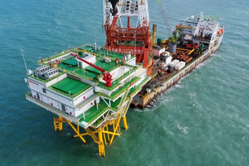 中國能建廣東院勘察設計南澳勒門Ⅰ海上風電場海上升壓站吊裝完成