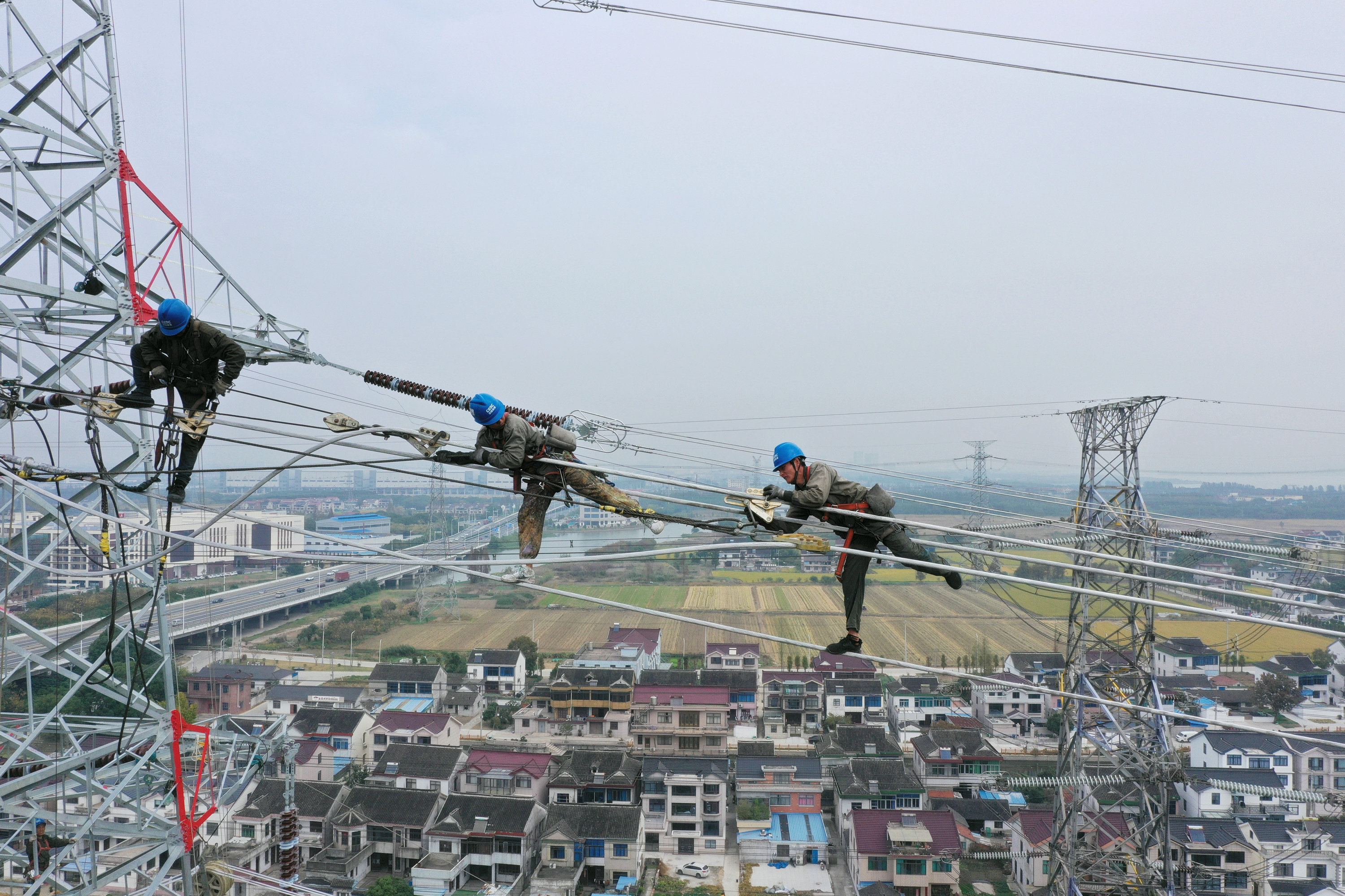 白鶴灘—江蘇±800千伏特高壓直流受端配套500千伏送出工程Ⅲ標(biāo)段施工場景。陳康攝