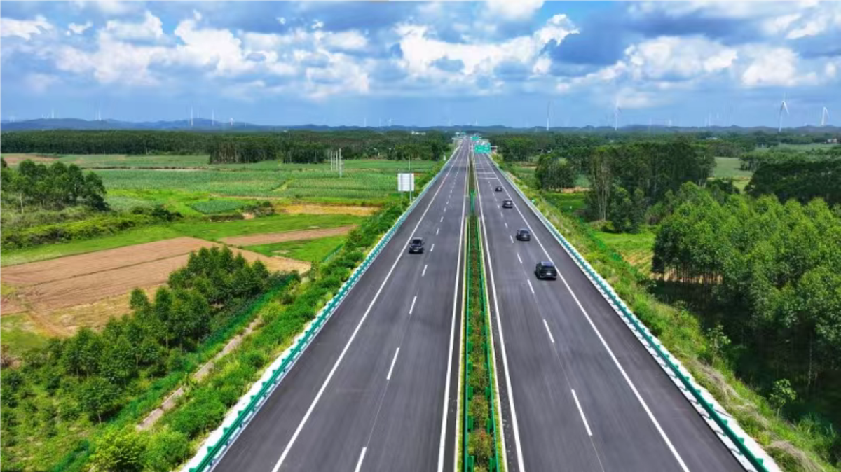 6月26日,在荔枝之鄉——廣西欽州,欽州北過境線公路(又稱欽州繞城高速公路)正式通車。公路蜿蜒穿行于山丘、稻田、荔枝林中,連接蘭海,溝通賓欽,橫跨平陸運河,在北部灣經濟發展的浪潮中劃出一道壯美弧線。