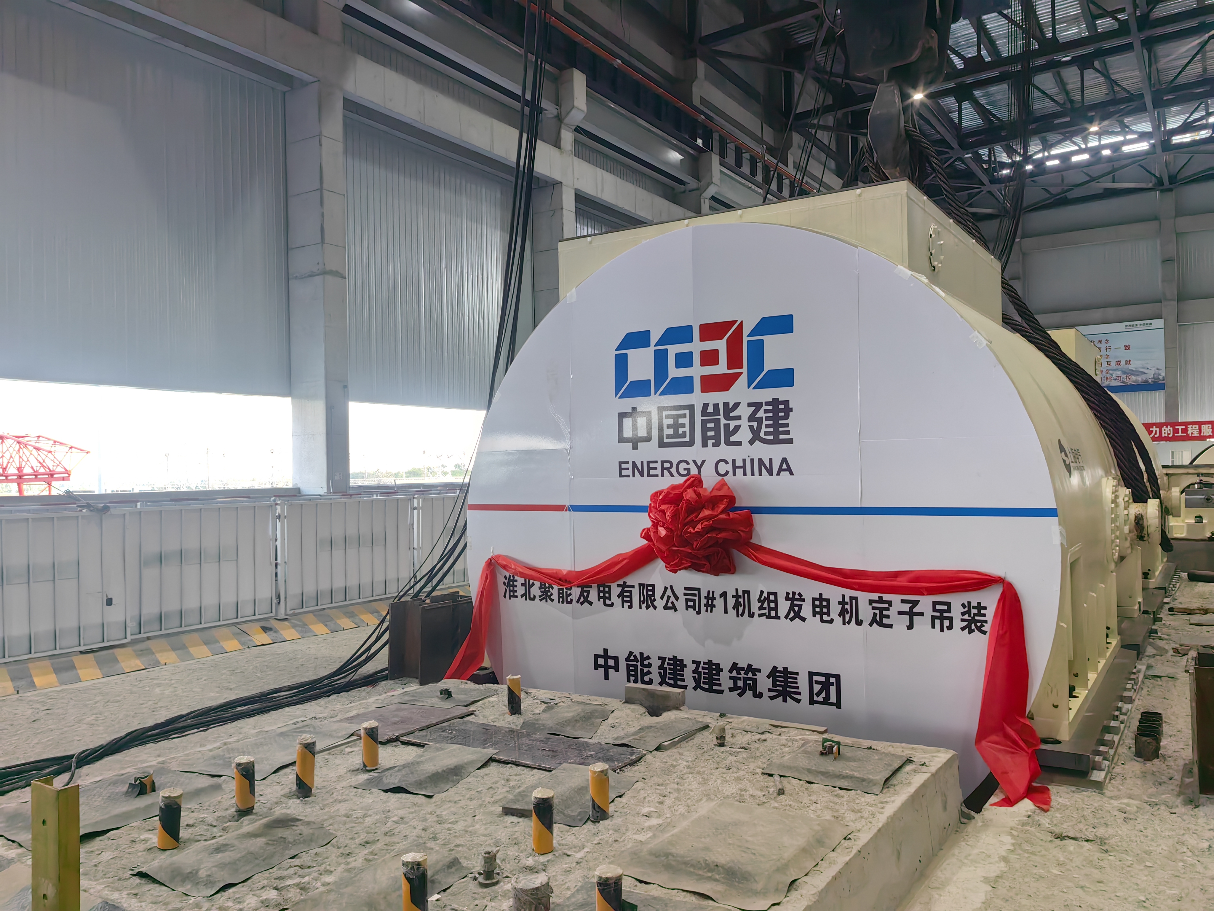 news近日,中國能建建筑集團承建的淮北聚能2×660兆瓦超超臨界機組工程1號機組發電機定子吊裝就位。